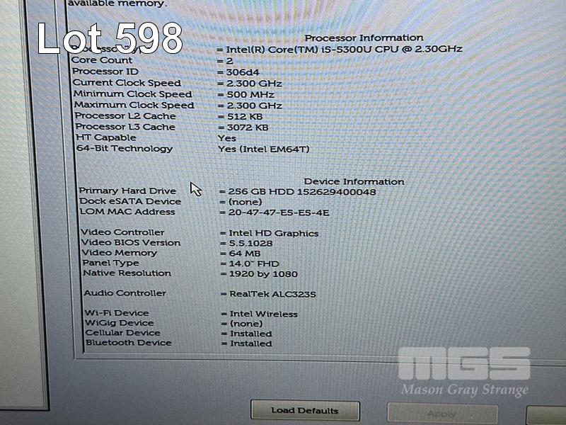 LAPTOP, DELL LATITUDE E7450, CORE i5 5300U (5TH GEN) @ 2.3GHz, 8GB DDR3 RAM, 256GB SSD, 14" WIDESCREEN (1920x1080), INTEL HD VIDEO, Wi-Fi, CELLULAR, BLUETOOTH, WINDOWS 10 PRO INSTALLED (NO POWER SUPPLY) (NOTE: MARKS ON TOUCHPAD) S/N:6TPX362