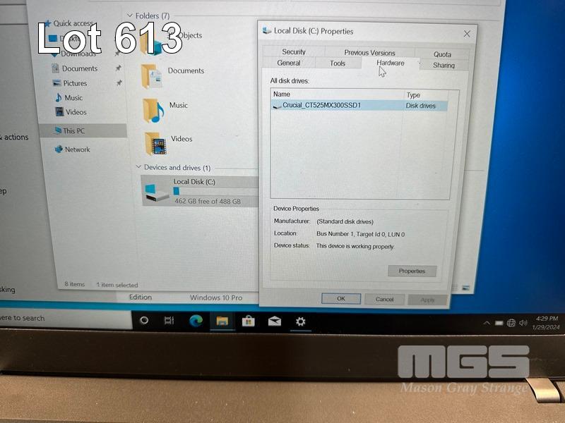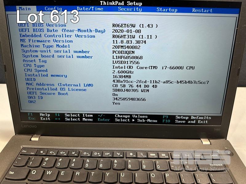 LAPTOP, LENOVO THINKPAD T460, TYPE 20FM, CORE i7 6600U (6TH GEN) @ 2.6GHz, 16GB DDR3 RAM, 525GB SSD, 14" WIDESCREEN (1920x1080), INTEL HD VIDEO, Wi-Fi, BLUETOOTH, WINDOWS 10 PRO INSTALLED & POWER SUPPLY (NOTE: MARKS ON SCREEN) S/N:PC0EUQEN