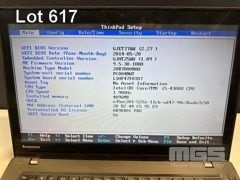 LAPTOP, LENOVO THINKPAD T440, TYPE 20B7, CORE i5 4300U (4TH GEN) @ 1.9GHz, 4GB DDR3 RAM, NO HDD, 14" TOUCHSCREEN (NO POWER SUPPLY) (NOTE: MARKS ON SCREEN) S/N:PC004NWT