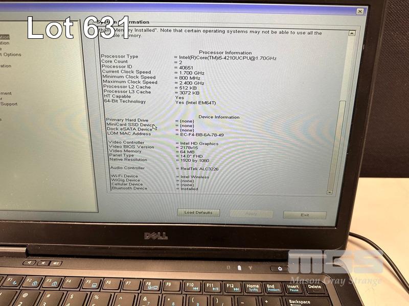 4 x LAPTOPS INC - DELL LATITUDE E7440, CORE i5 4210U (4TH GEN) @ 1.7GHz, 8GB DDR3 RAM, NO HDD - DELL LATITUDE E7470, NO RAM, NO HDD, INCOMPLETE, FAULTY (SWOLLEN BATTERY) - DELL LATITUDE E7450, NO RAM, NO HDD, INCOMPLETE, FAULTY - DELL LATITUDE E6540, NO RAM, NO HDD, INCOMPLETE, FAULTY (NO POWER SUPPLIES) S/N:B6ZJJ12, 9MPSPF2, 1N52F72, 1GHLJ12