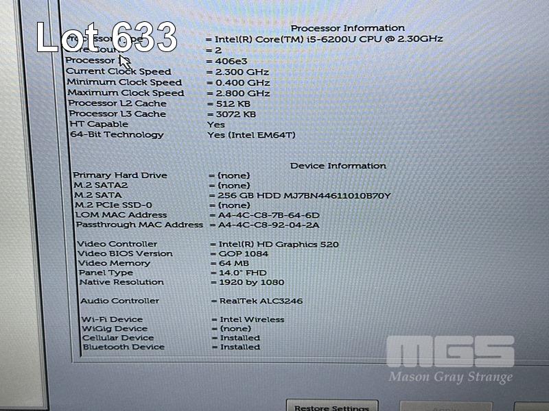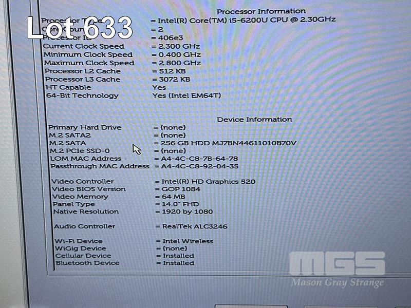 2 x LAPTOPS INC - DELL LATITUDE 5480, CORE i5 6200U (6TH GEN) @ 2.3GHz, 8GB DDR4 RAM, 256GB M.2 SSD, 14" WIDESCREEN (1920x1080), INTEL HD GRAPHICS 520, Wi-Fi, CELLULAR, BLUETOOTH, WINDOWS 10 PRO INSTALLED (NO POWER SUPPLY) (NOTE: 1 x MISSING ARROW KEY, 1 x DAMAGE TO CASING & MARKS ON SCREEN) S/N:BZ8H3M2, 409H3M2
