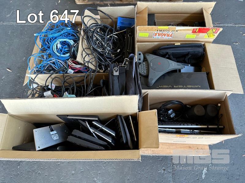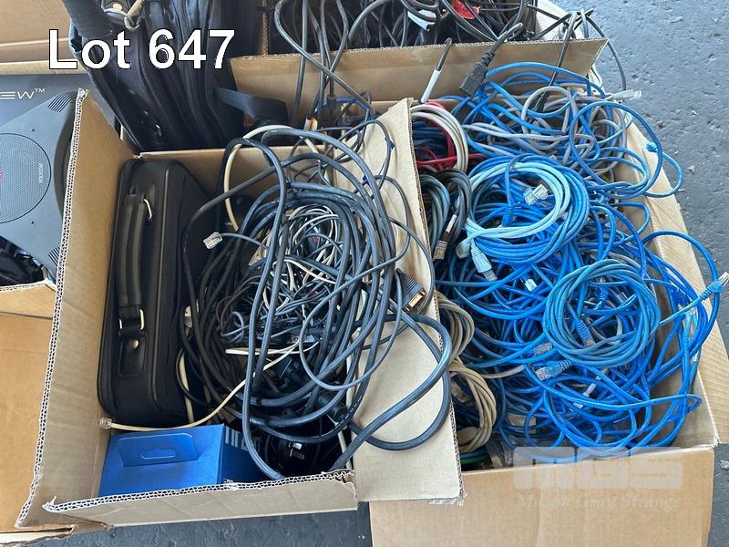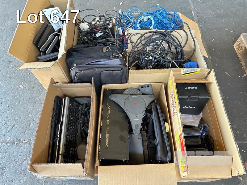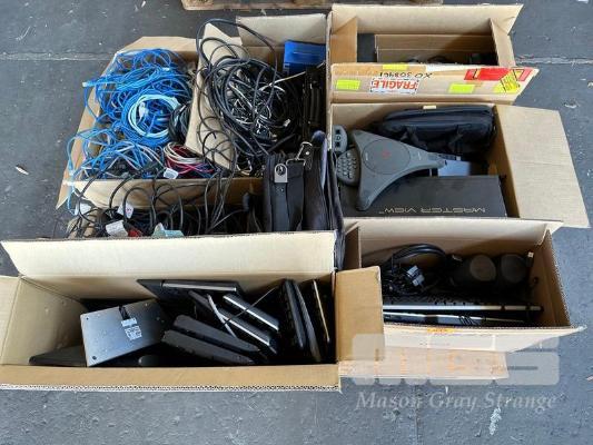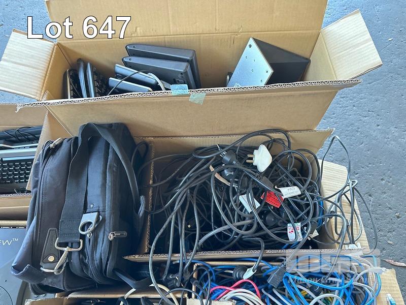 1 x PALLET LOT ASST CABLES, CAT5 NETWORK, KEYBOARDS, DELL THIN CLIENT NETWORK TERMINALS, LAPTOP BAGS, ETC