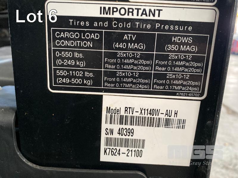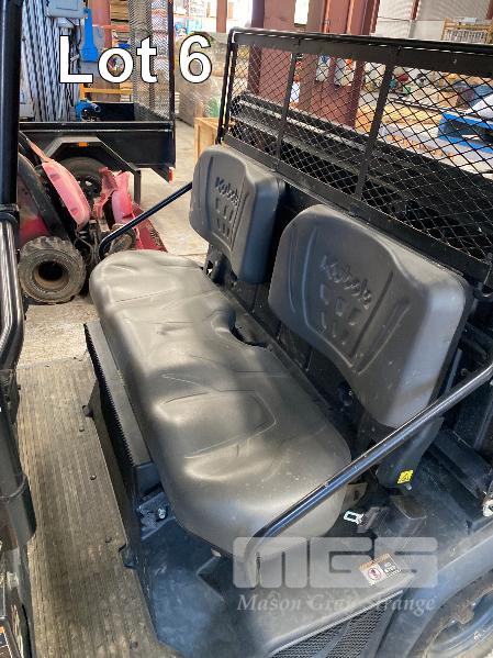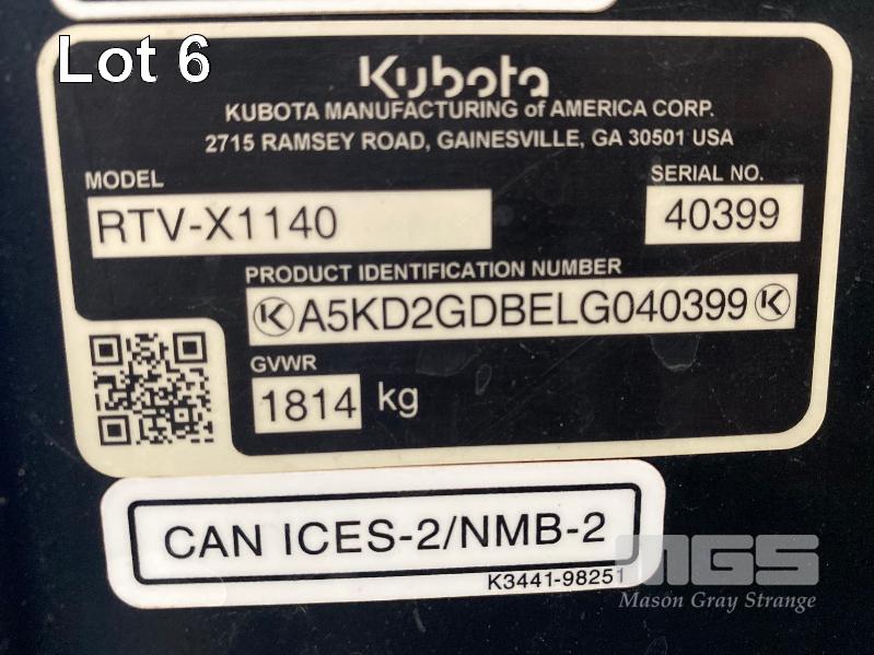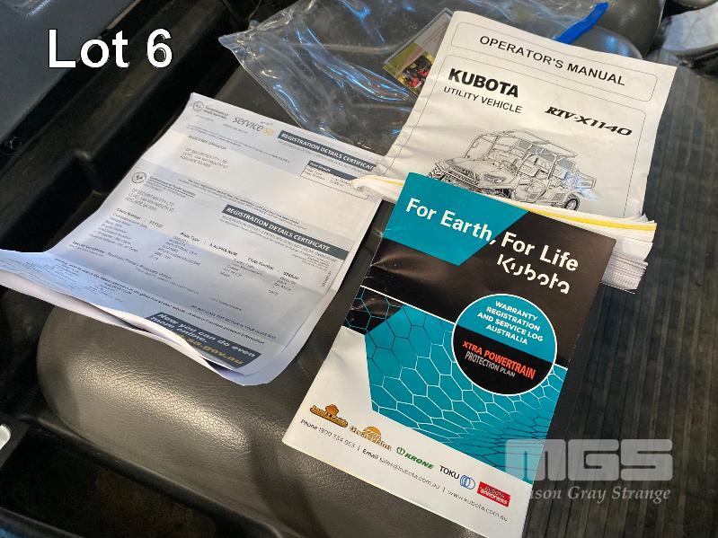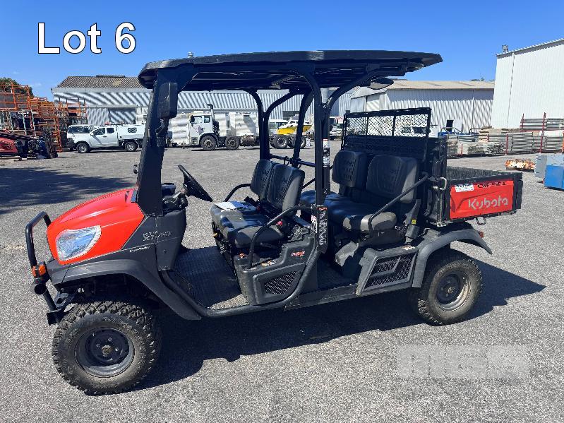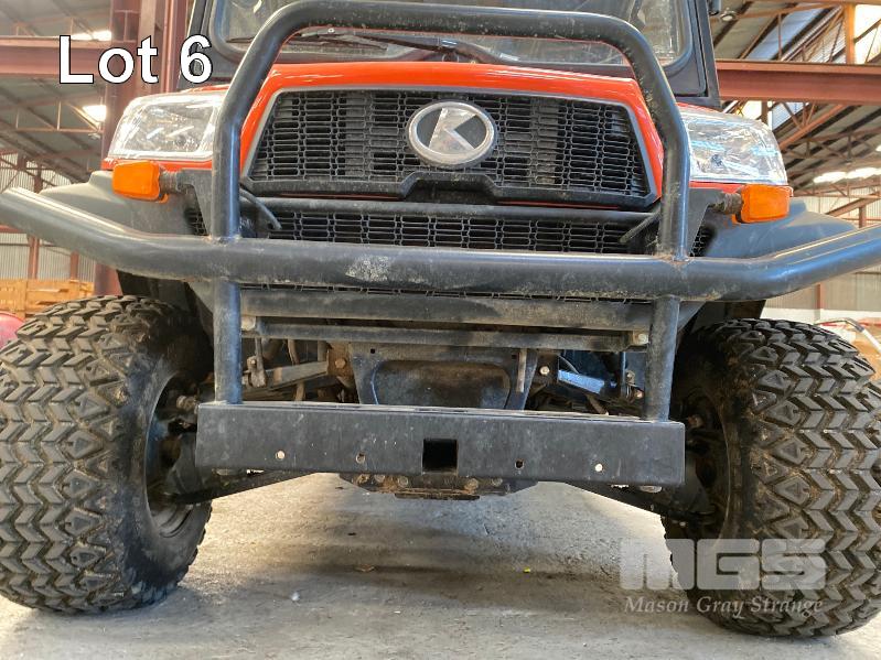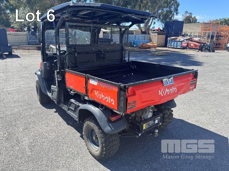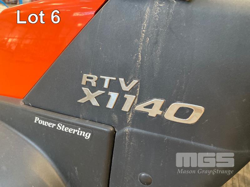 2021 KUBOTA X1140 RTV, ATV, 4x4 REG: S26 SJU VIN: RTVX1140WHAU40399 ENG: 1LQ7683 1123cc DIESEL ENGINE HOURS: 258 SHOWING AUTOMATIC TRANSMISSION HYDRAULIC TIPPER TRAY ORANGE DUCO, GREY INTERIOR 4 SEATS, TYRES: GOOD CANOPY, CARGO BARRIER, NUDGE BAR, POWER STEERING, STEEL TRAY, PTO 2 x KEYS WITH REG PAPERS & BOOKS