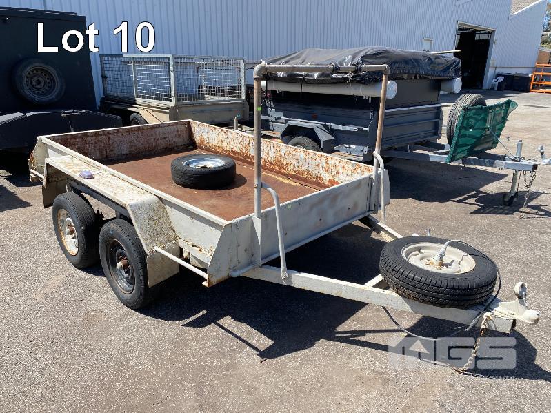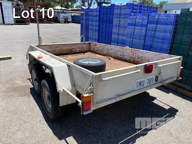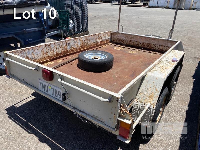 TANDEM AXLE TRAILER, 7.8 x 5' (2400 x 1510mm) REG: TMU 789 (SA) WHITE, BALL HITCH 2 x SPARE WHEELS, STEEL FLOOR WITH REGO PAPERS