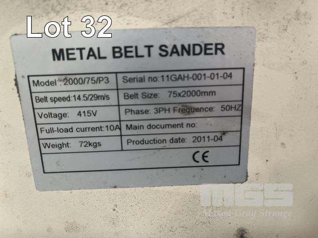 LINISHALL BELT LINISHER, MOD: 2000/75/P3 DOM: 2011 BELT SIZE: 75 x 2000mm SPEED: 14.5/29m/s 415V