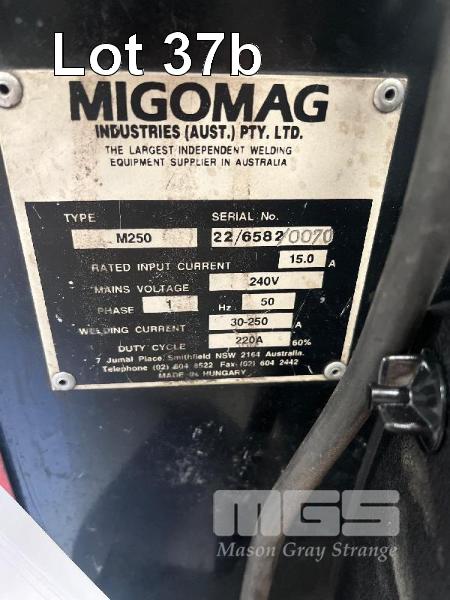 MIG WELDER, MIGOMAG TYPE: M250 WELDING CURRENT: 30-250 240V WITH LEADS & MASK