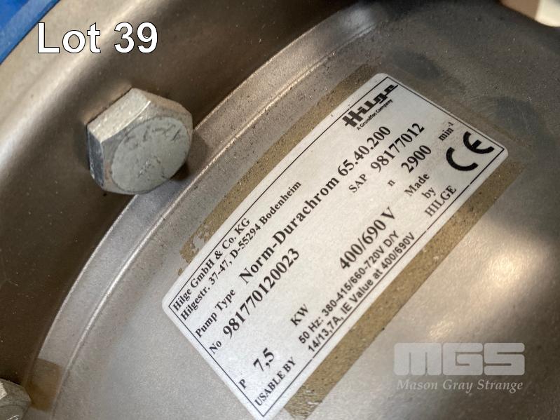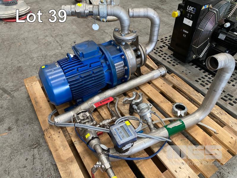 FLUID PUMP, HILGO GRUNDFOS TYPE: DURACHROM 65.40.200 55mm INLET/OUTLET 2,900L/MIN 3 PHASE, 7.5kw WITH VALVE MANIFOLD & BURKERT FLOW METER AS NEW 1 x PALLET