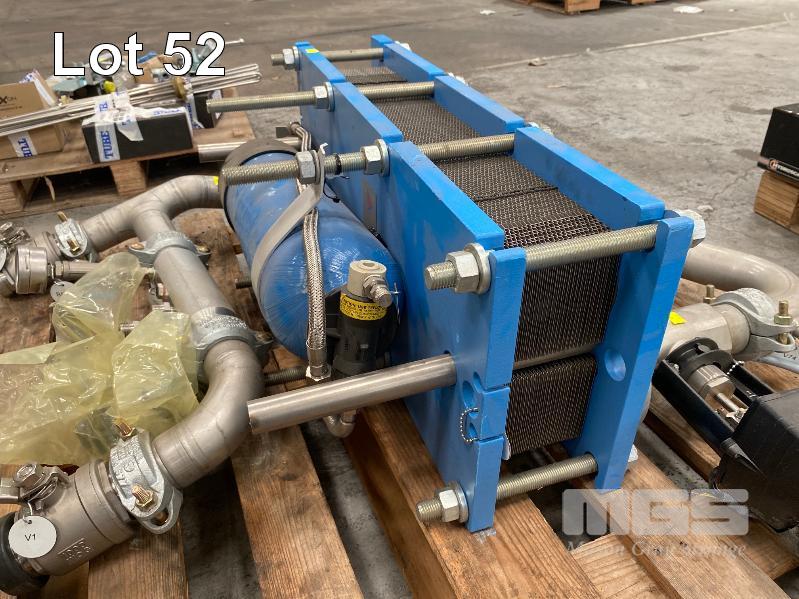 HEAT EXCHANGER, TRANTER INTERNATIONAL AB MOD: 6CP-016PI DOM: 2012 STAINLESS STEEL 830 x 320 x 200mm MAX WORKING PRESSURE: 10 BAR MAX WORKING TEMP: 100 DEGREE CELSIUS VOLUME: 6.72 LITRES WITH PIPEWORK ACTUATOR & PRESSURE VESSEL 1 x PALLET