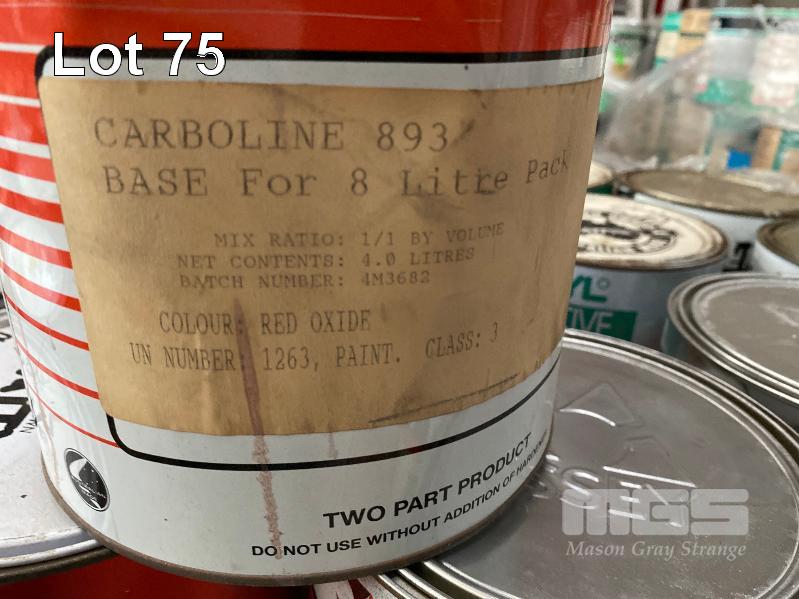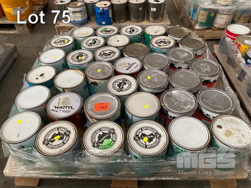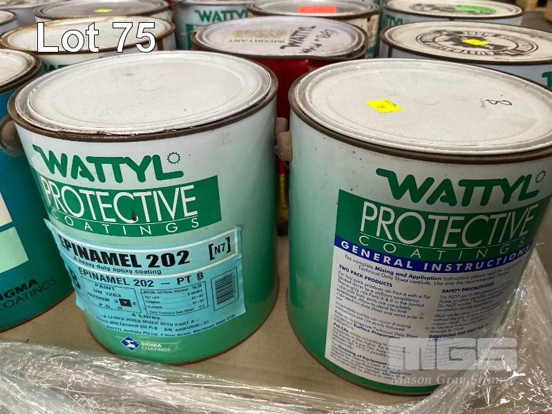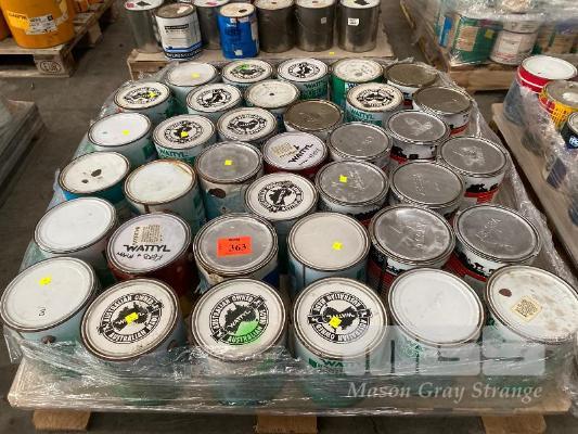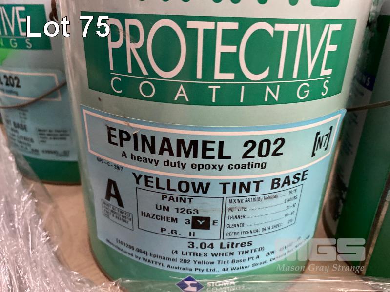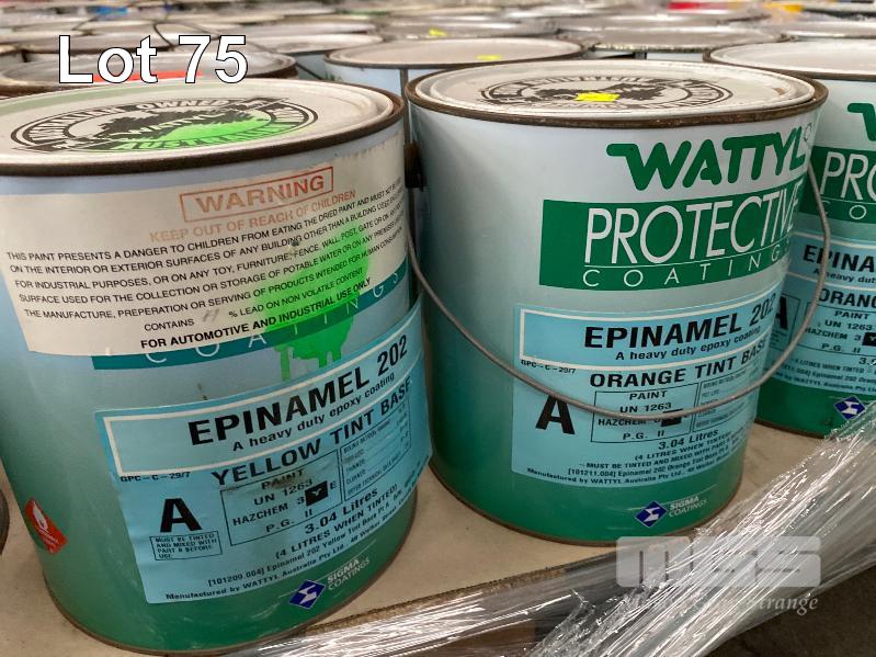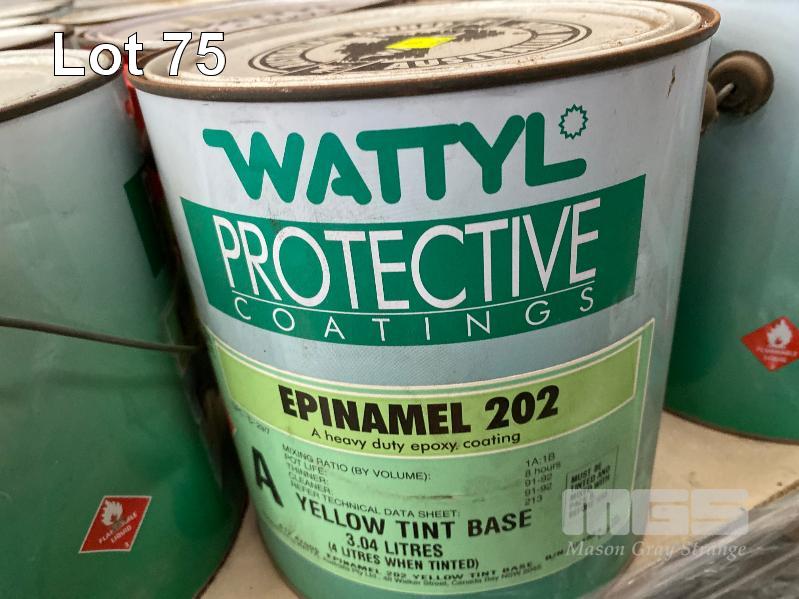 EPOXY COATINGS, COLOURS INCLUDE YELLOW TINT BASE, GREY, GREEN, ETC 37 x 4 LITRE TINS, 1 x PALLET