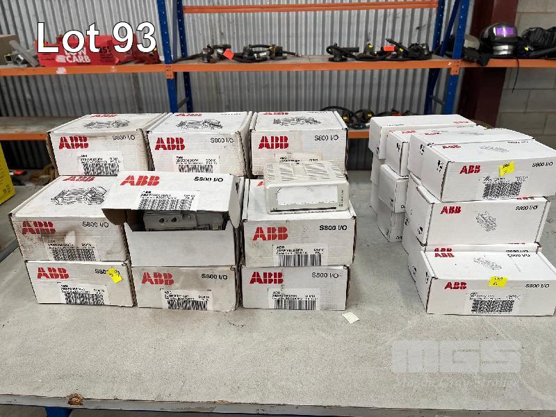 ABB ELECTRONIC CONTROL MODULES INCLUDING S8001/0, AC800M, 3BSE008510R0, 3BSE1323RI, 3BSE008508R1 SOME WATER DAMAGED 1 x SHELF