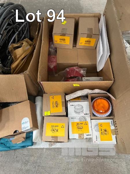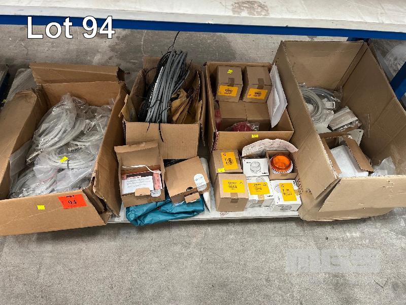 ELECTRONIC MODULES & COMPONENTS INCLUDING MICRO SYSTEM LED DISPLAY PANELS, SOLEX & FULLEON, BEACON LIGHT ALARM, FLASHER UNITS, CABLES, ETC 1 x SHELF