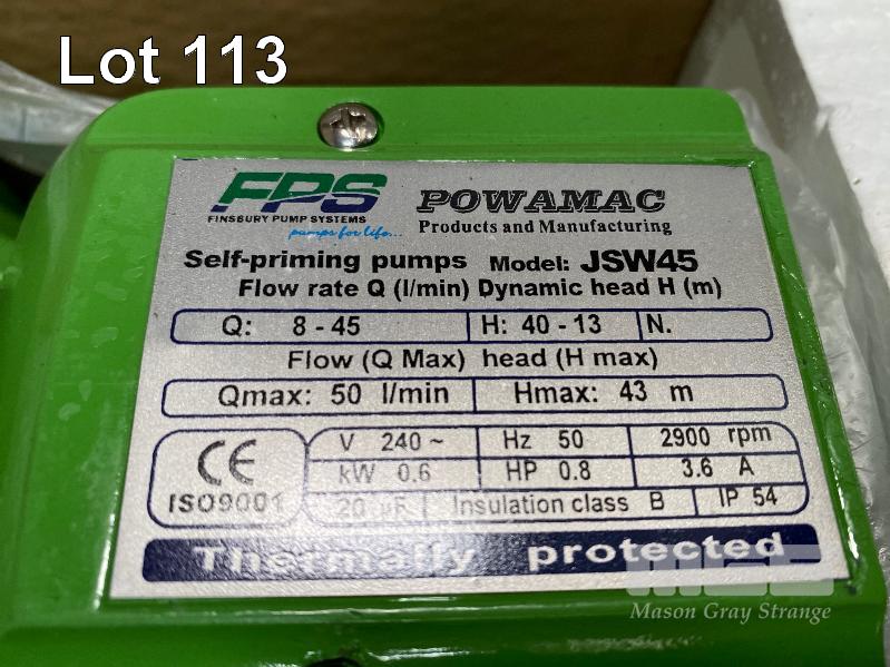 FLUID PUMP, SELF PRIMING, FPS, POWAMAC MOD: JSW45 0.6kw FLOW: 50L/min HEAD: 43m 240V NEW IN BOX