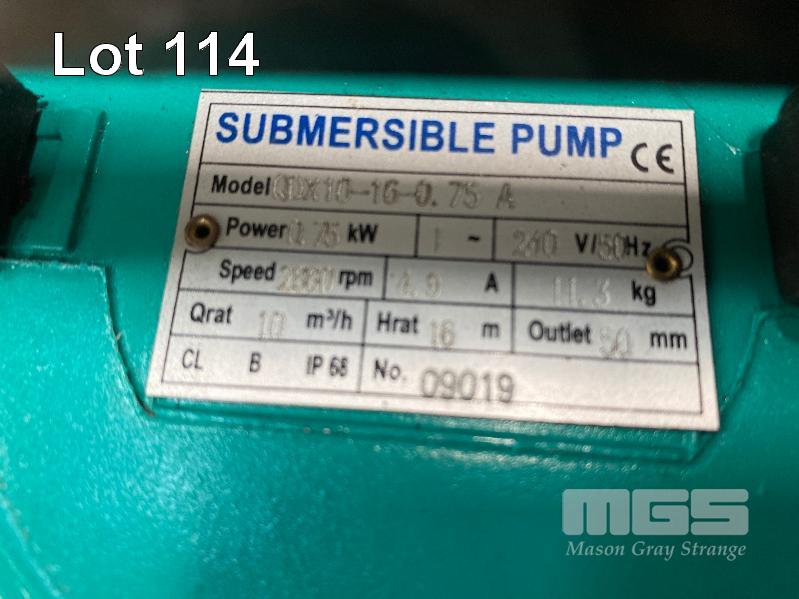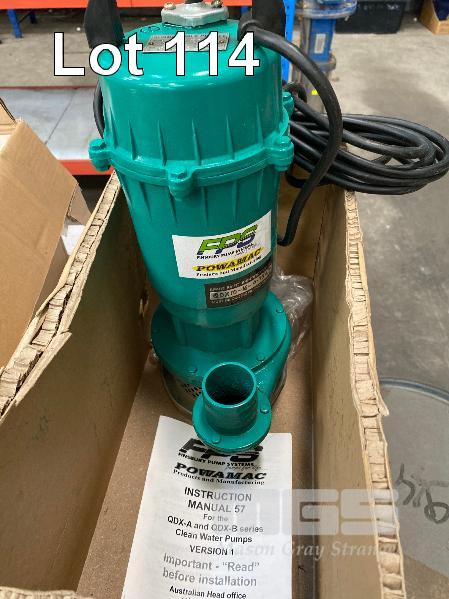 SUMP/SUBMERSIBLE PUMP, FPS, POWERMAC MOD: QPX10-16-0 0.75kw, FLOW: 10m3/H HEAD: 16m 240V