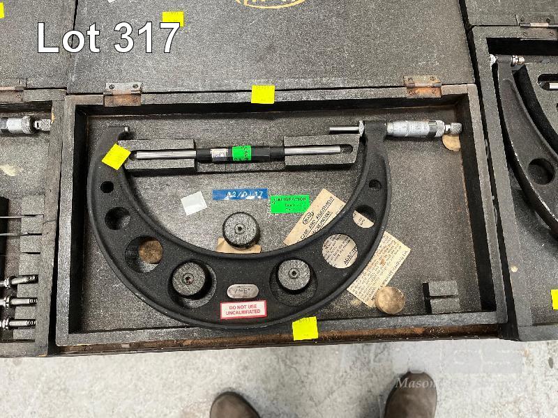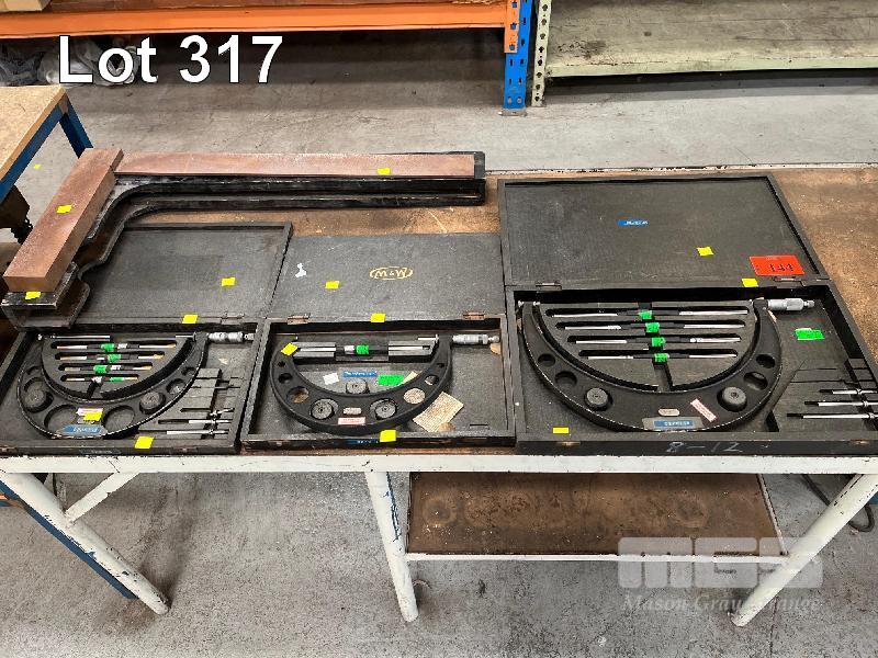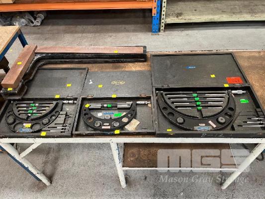 3 x MICROMETERS, MOORE & WRIGHT No 443, 4-8" No 971B, 7-8" No 9457, 8-12" WITH MOORE & WRIGHT 700mm RIGHT ANGLE
