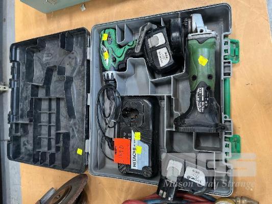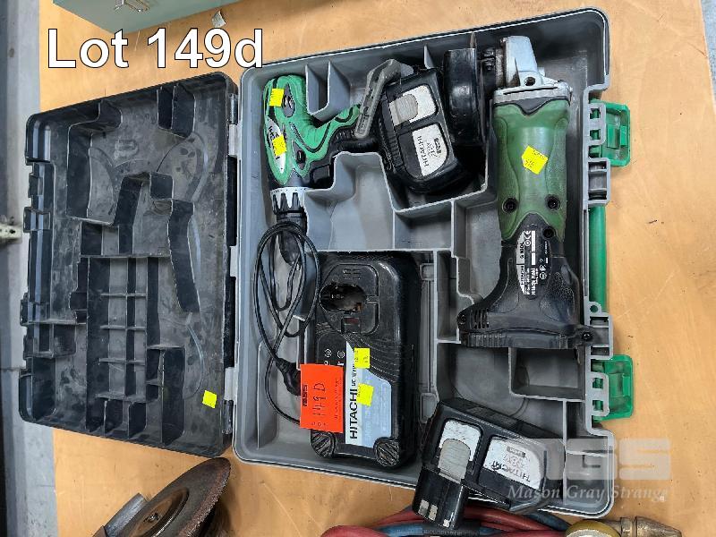 GRINDER, HITACHI, 125mm, HITACHI DRILL WITH 2 x BATTERIES & CHARGER
