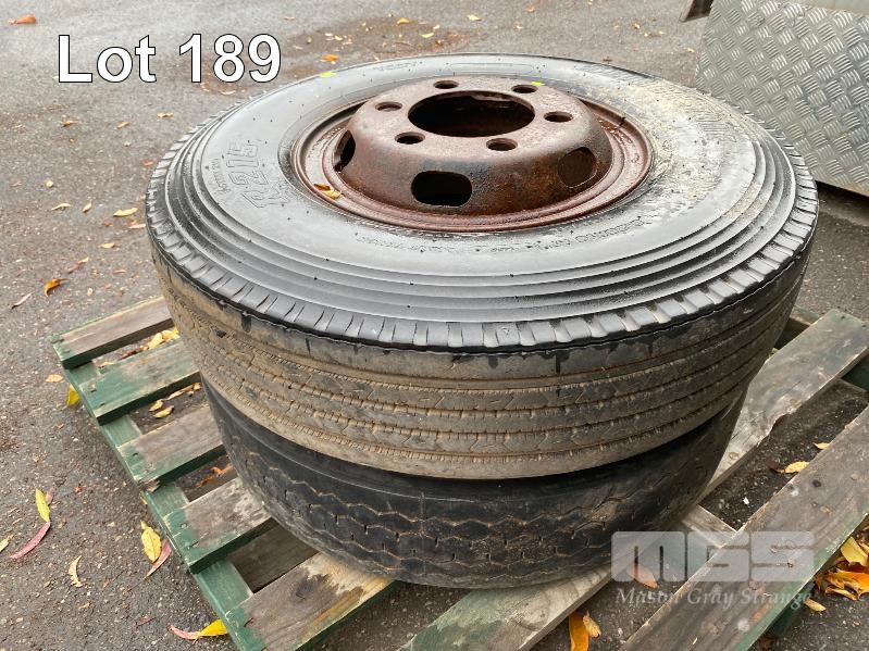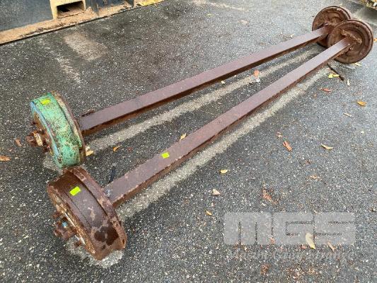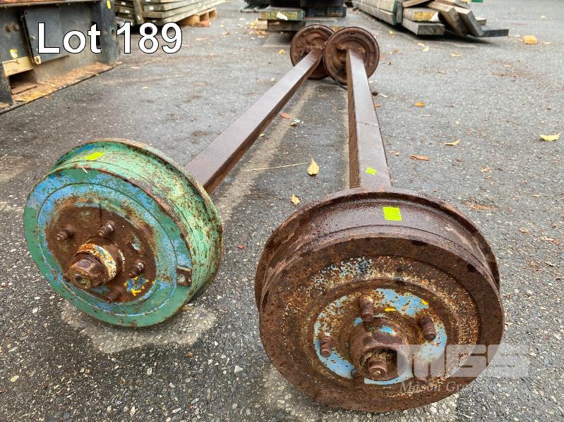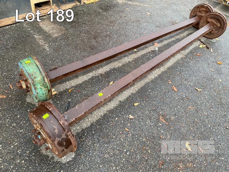 2 x TRAILER AXLES, 2150mm (L) HUBS, DRUM BRAKES & 2 x TRUCK RIMS & TYRES
