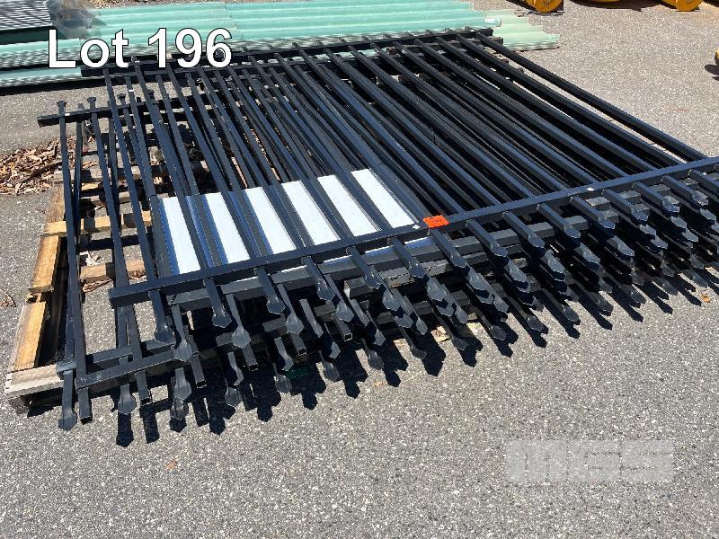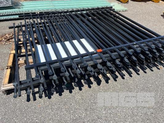 TUBULAR FENCE PANELS, BLACK SQUARE TUBE 6 x PANELS, ASSORTED SIZES UP TO 2100mm (H), 2400mm (W) INCLUDING GATE