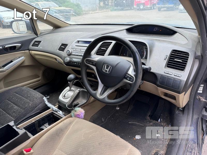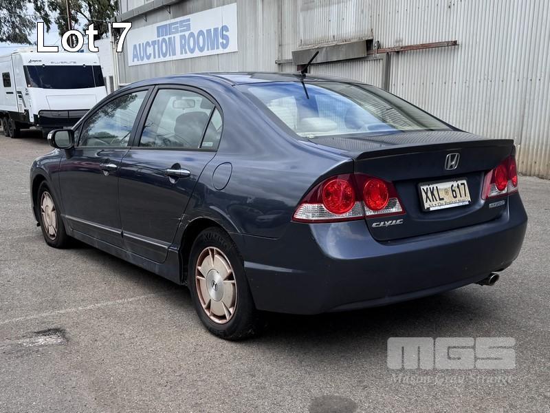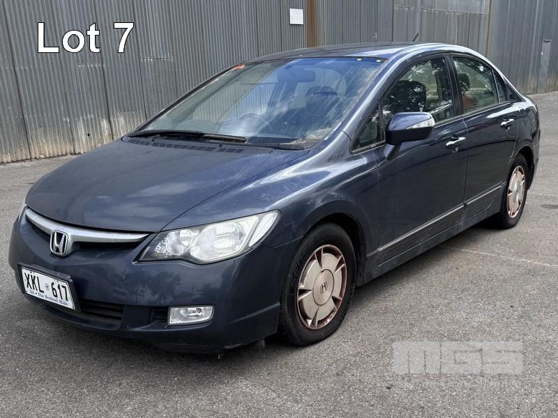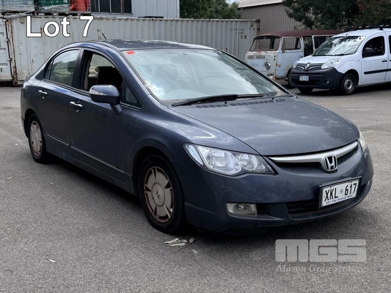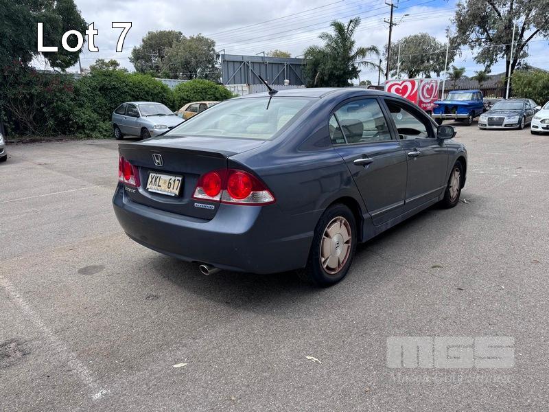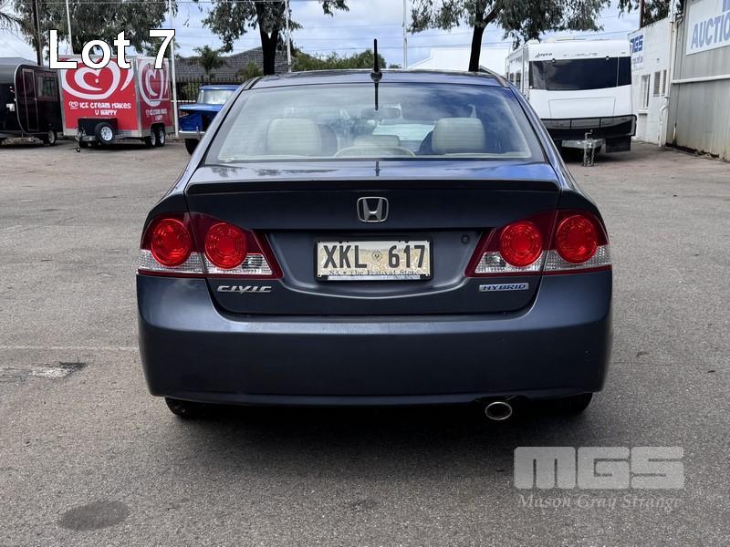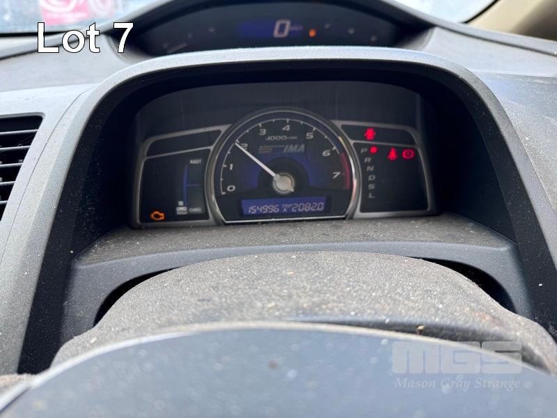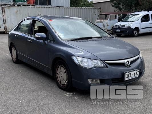 2006 (CP) HONDA CIVIC HYBRID SEDAN REG: XKL 617 (SA) VIN: JHMFD362065202512 ENG: LDA21022324 ODO: 154,996kms SHOWING 1.3 LITRE, AUTOMATIC TRANSMISSION, PETROL, GREY DUCO, 4 DOORS, 5 SEAT, FWD ABS, AIR BAG, AIR CON, ALLOY WHEELS, CD PLAYER, CENTRAL LOCKING, CRUISE CONTROL, FOG LAMPS, IMMOBILISER, POWER STEERING, POWER WINDOWS, SPARE WHEEL, KEY #33 (WITH 1 KEY/S, WITH OWNER'S MANUAL, WITH SERVICE BOOKS) CONDITION: CLUSTER - CHECK ENGINE LIGHT PASSENGER REAR DOOR/1/4 - SCRAPE/SCRATCH REAR BUMPER - LOOSE