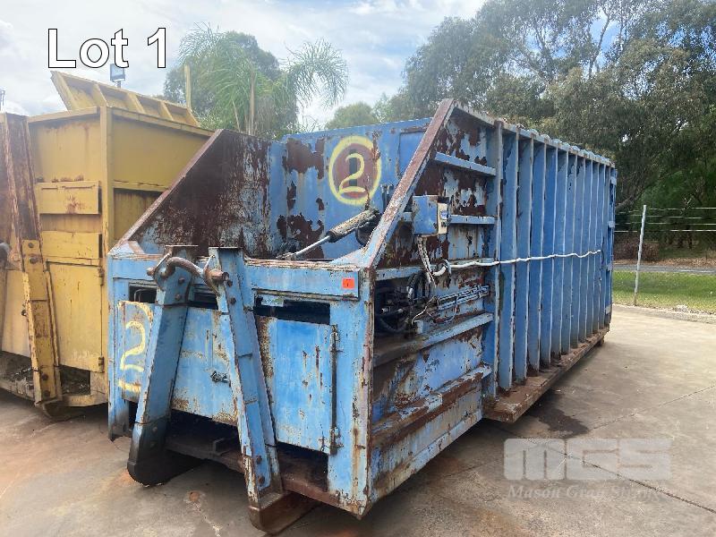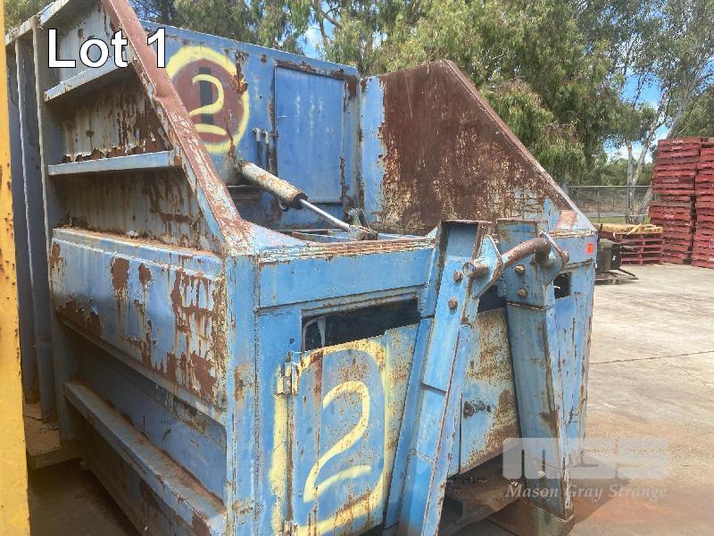 RUBBISH COMPACTOR, UNKNOWN BRAND HOOK LIFT, 6700 x 2400mm RUNNING