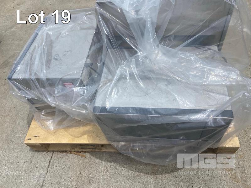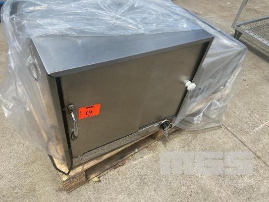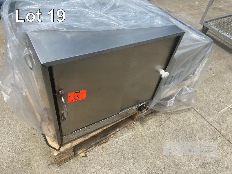 2 x MICROWAVES, PANASONIC, 1100w, 240V & PIE WARMER, OAKOAR, SLIDING DOORS, 240V