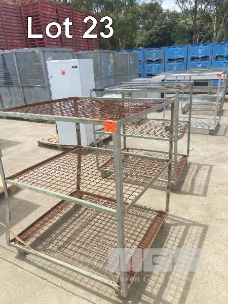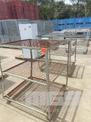 PAIR STEEL TUBE & MESH STORAGE RACKS, 3 TIER, 1050 x 930 x 1200mm