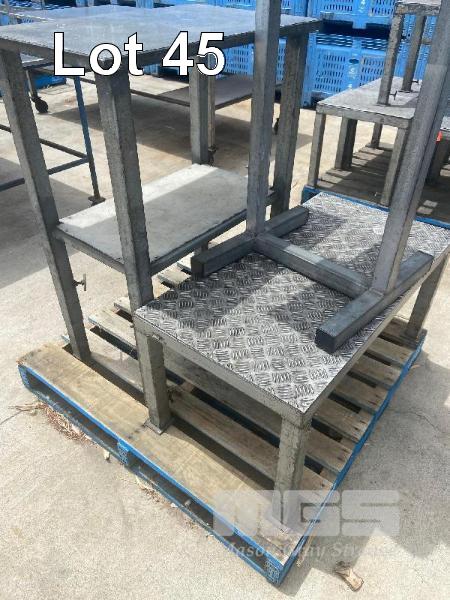 WORK STATION PODIUM, 500 x 500 X 1200mm (H) STEEL FRAME WORK STAND, ALLOY CHECKER PLATE TOP, 1200 x 500 x 500mm (H) WITH ADJUSTABLE LEGS, 2 TIER STOCK STAND, 800 x 500 x 900mm (H) WITH ADJUSTABLE LEGS
