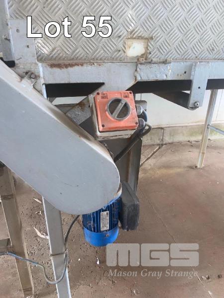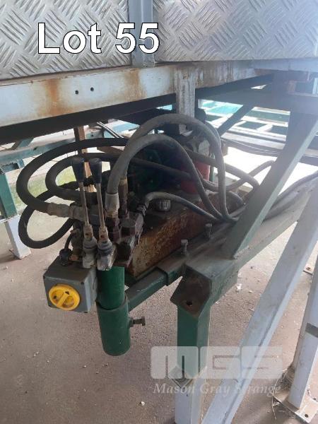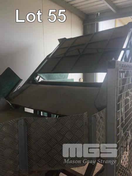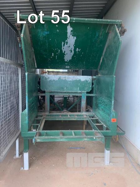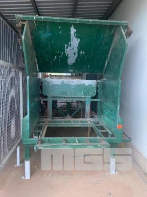 PRODUCE BIN TIPPER, HYDRAULIC WILL ACCEPT 1200mm BIN MANUAL CONTROL WITH OUTFEED CONVEYOR, 3500 x 1200mm OVERHEAD SPRAY WASH, 415V