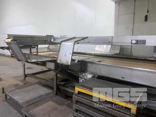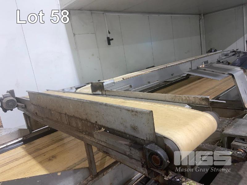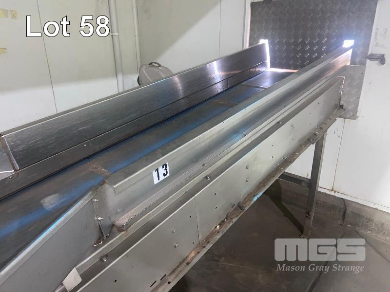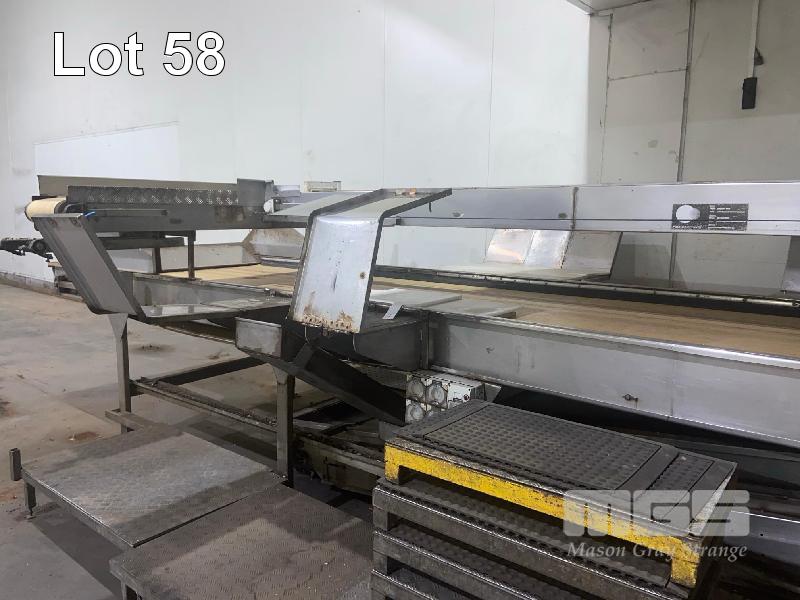 LARGE PRODUCE CONVEYOR WITH 8 PERSON SORTING STATIONS, STAINLESS STEEL FRAME, 600 x 1200mm MAIN CONVEYOR, 4000 x 300mm UPPER SORTING CONVEYOR, 2400 x 300mm UPPER SORTING CONVEYOR, 8000 x 600mm LOWER INCLINE WASTE CONVEYOR 2800 x 330mm EXIT CONVEYOR 415V WITH E.S.