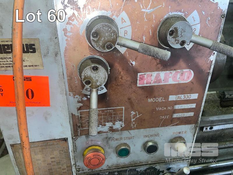 CENTER LATHE, HAFCO MOD: AL330 DOM: 1998 240V 900mm BC 38mm BORE DUAL CALIBRATION, METRIC & IMPERIAL, CAM-LOC 6" 3 JAW CHUCK WITH REVERSIBLE JAWS, 8" INDEPENDENT 4 JAW CHUCK, 10" FACE PLATE, 2 x STEADIES 4 WAY TOOL POST 3 x DRILL CHUCKS LIVE CENTRE, DEAD CENTRE WITH MORE ASSORTED TOOLING