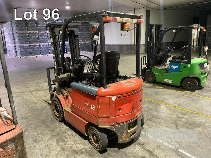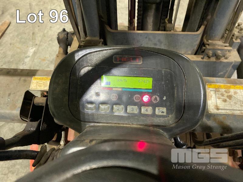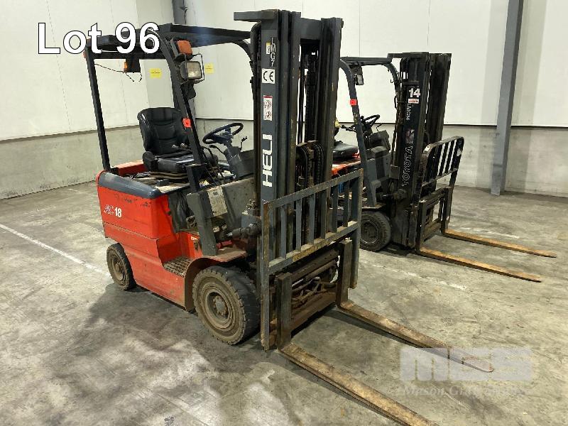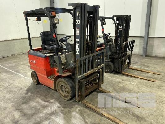 ELECTRIC FORKLIFT, HELI MOD: CPD18 DOM: 2012 TILT, SIDE SHIFT, 3 STAGE CONTAINER MAST SOLID TYRES WORK LIGHTS 1,800kg CAPACITY HOURS: 6,742 MAX LIFT: 4,700mm WITH CHARGER