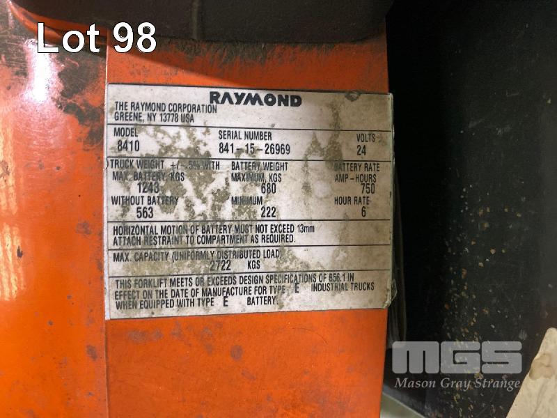 ELECTRIC PALLET JACK, RAYMOND MOD: 8410 S/NO: 841-15-26969 2,722kg CAPACITY HOURS: 4,734 WITH CHARGER