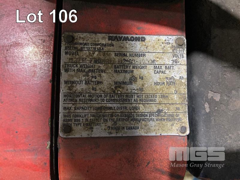 ELECTRIC PALLET JACK, RAYMOND MOD: 112TM-FRE6OL S/NO: 112-03-49026 2,700kg CAPACITY HOURS: 7,667 WITH CHARGER