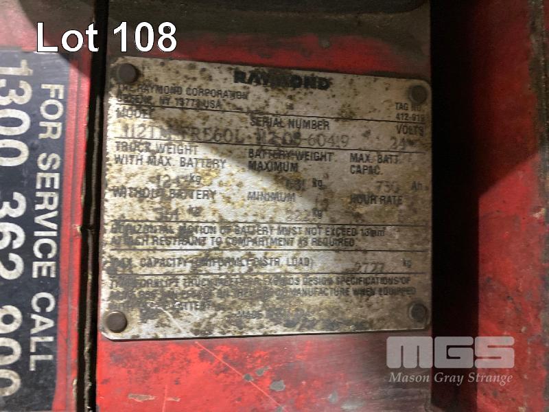 ELECTRIC PALLET JACK, RAYMOND MOD: 112TM-FRE6OL S/NO: 12-05-60419 2,700kg CAPACITY HOURS: 5,154 WITH CHARGER