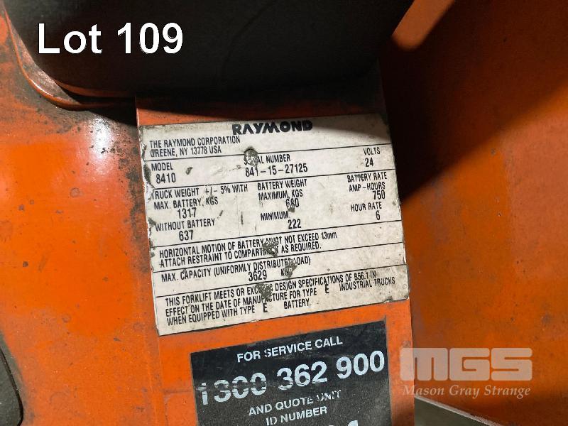 ELECTRIC PALLET JACK, RAYMOND MOD: 8410 S/NO: 841-15-27125 3,629kg CAPACITY HOURS: 4,402 WITH CHARGER