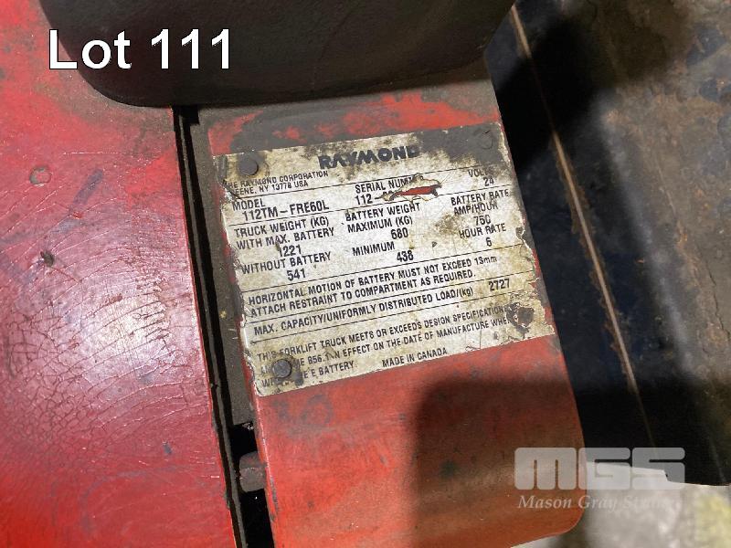 ELECTRIC PALLET JACK, RAYMOND MOD: 112TM-FRE60L S/NO: N/A 2,727kg CAPACITY HOURS: 7,834 WITH CHARGER