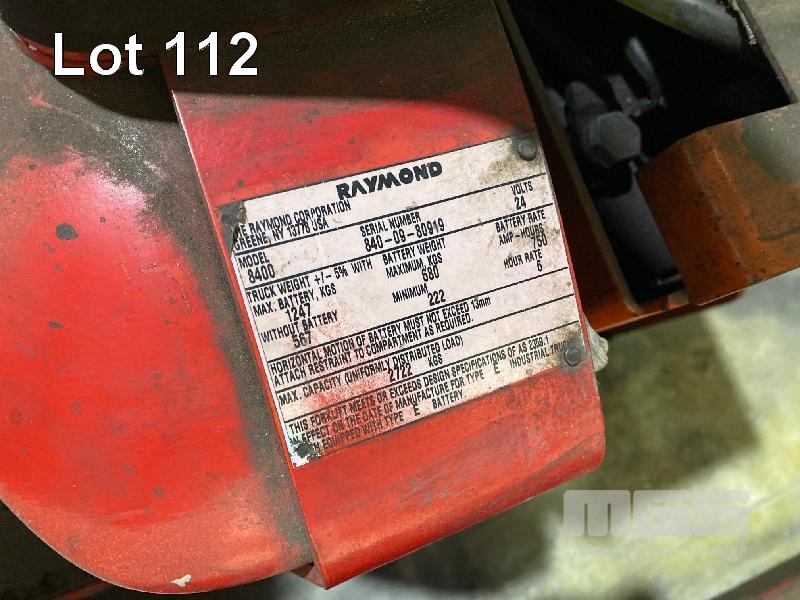 ELECTRIC PALLET JACK, RAYMOND MOD: 8400 S/NO: 840-09-80919 2,722kg CAPACITY HOURS: 7,117 WITH CHARGER