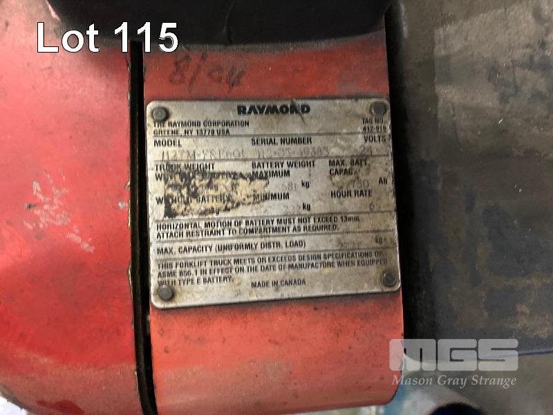 ELECTRIC PALLET JACK, RAYMOND MOD: 112TM-FRE60L S/NO: 112-03-49583 2,727kg CAPACITY HOURS: 6,116 WITH CHARGER