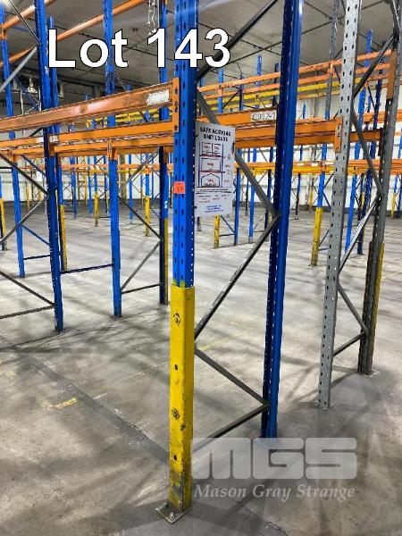 9 BAY PALLET RACKING, DEXION 2 x UPRIGHTS, 4200mm 8 x UPRIGHTS, 5500mm 32 x CROSS BEAMS, 2740mm 4 x CROSS BEAMS, 3820mm 10 x POST GUARDS