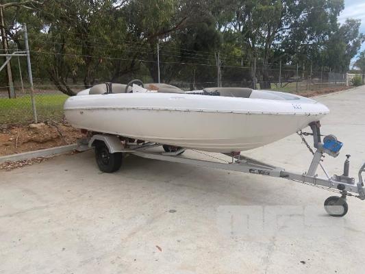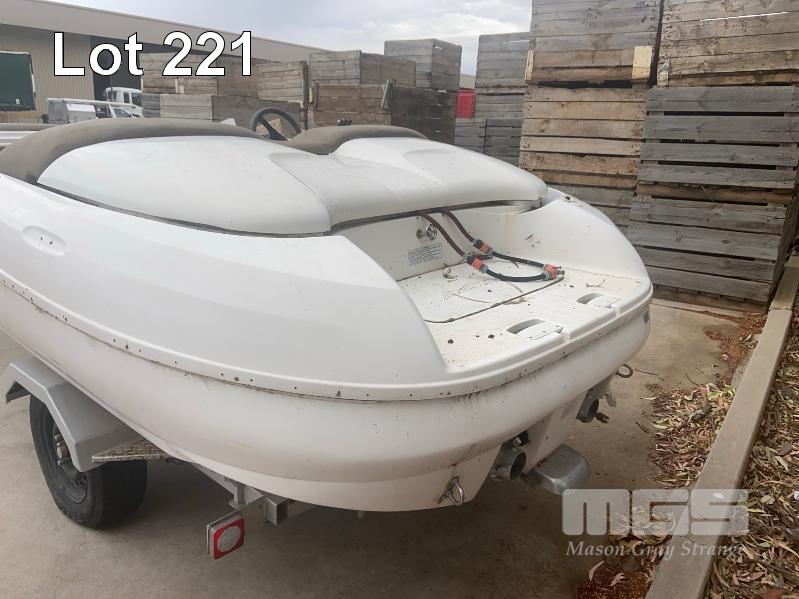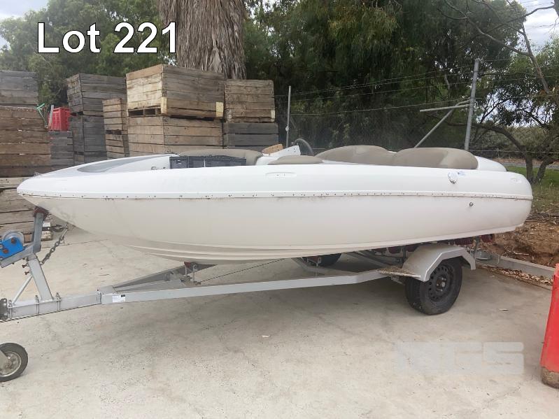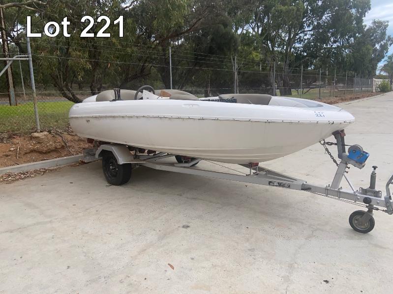 12ft JET BOAT, WATERWAYS EXCITER HIN: AV-WWA093805RHO FIBREGLASS ALL FAULTS, POOR CONDITION WITH 2015 SINGLE AXLE BOAT TRAILER, HUME REG: S444 TDX VIN: 6T9T22005F01FC034 ATM: 1,400kg 50mm BALL HITCH HAND WINCH TRAILER OK CONDITION