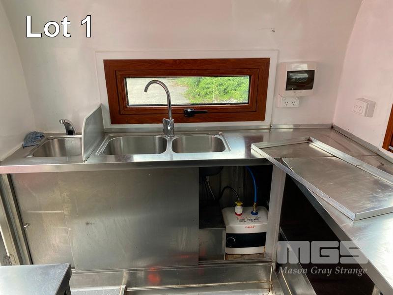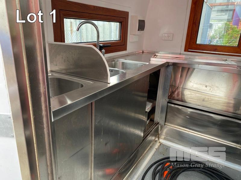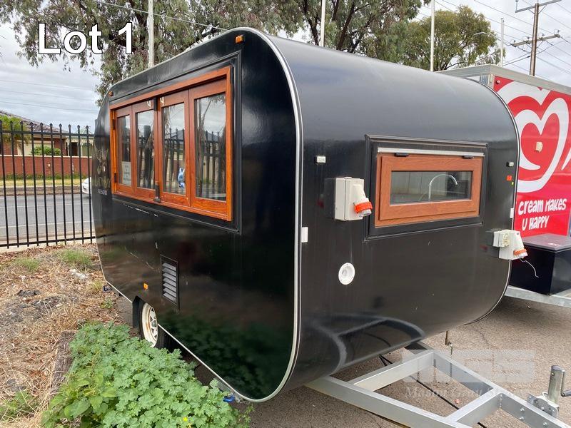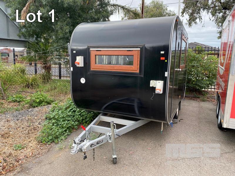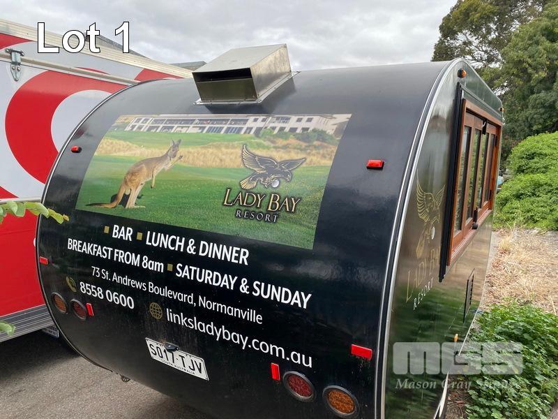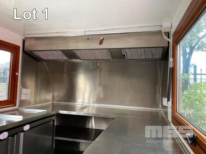 RETRO CATERING CARAVAN, CFC TRAILERS, 25' REG: S017 TJV VIN: 6U9VSS00000265366 MOD: CFC38V DOM: 04/2022 1,200kg BALL HITCH SINGLE AXLE FITTED WITH TWIN BOWL STAINLESS STEEL SINK MIXER TAP, 2 x STAINLESS STEEL 2 DOOR UNDERBENCH CHEFS FRIDGES EXHAUST CANOPY, INTERNAL LIGHTING, SAFETY SWITCH WITH PAPERS