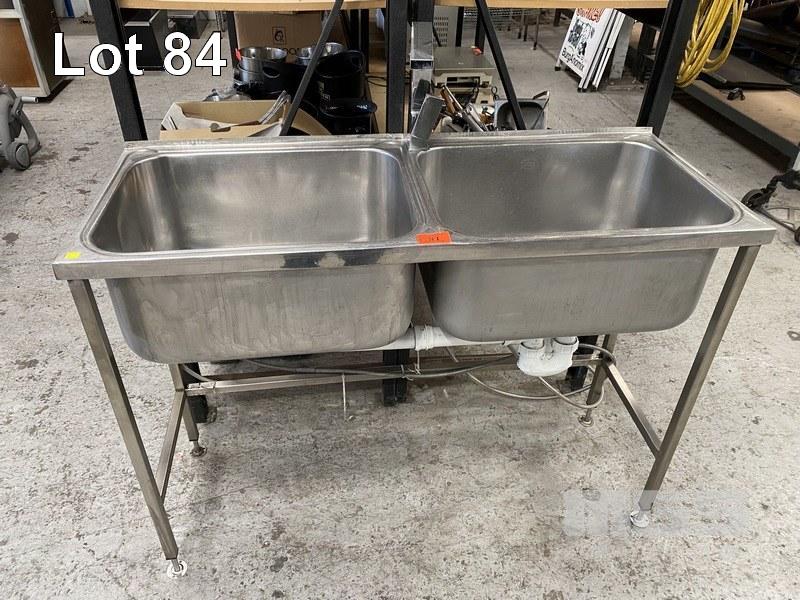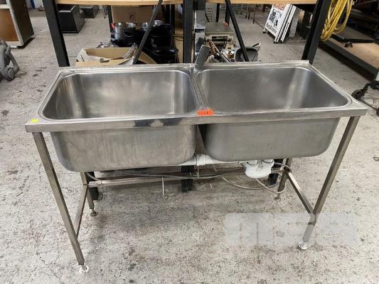STAINLESS STEEL TWIN BOWL SINK, 127 x 50cm, WITH TAP