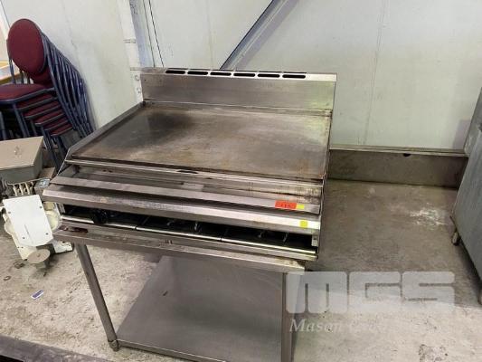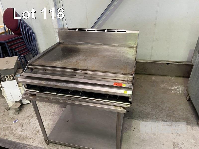 HOT PLATE, 3 BURNER, 900mm, GAS (NOTE: 2 x KNOBS MISSING)