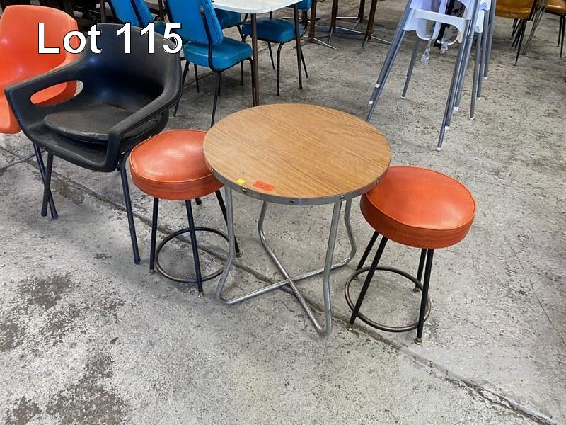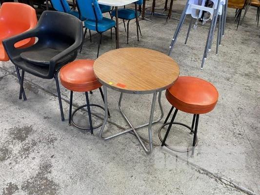 RETRO COFFEE TABLE, 60cm DIAMETER & 2 x STOOLS