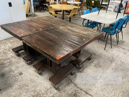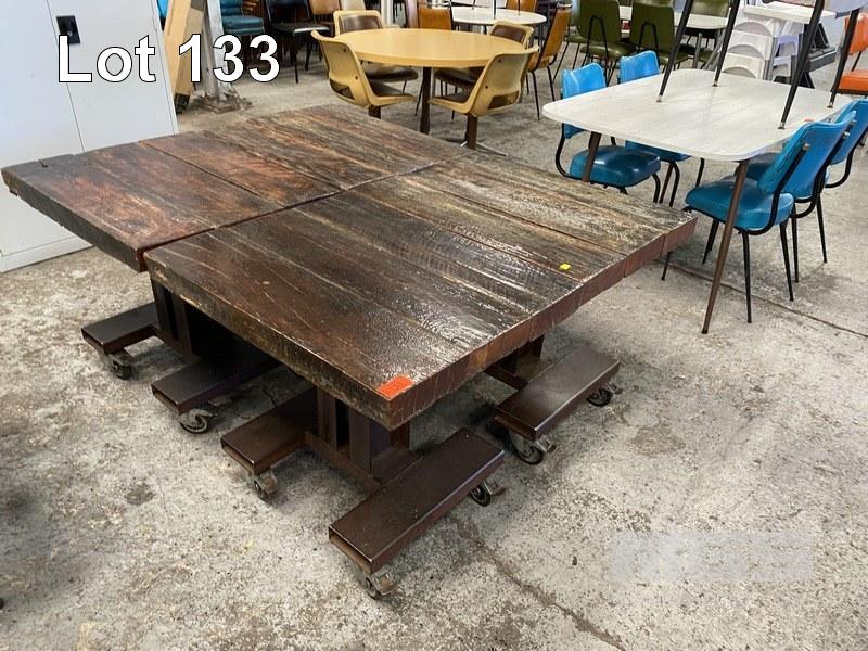 4 x MOBILE CAFE TABLES, 80 x 63cm, STAINED SOLID TIMBER TOP