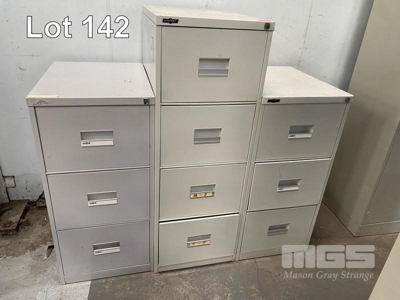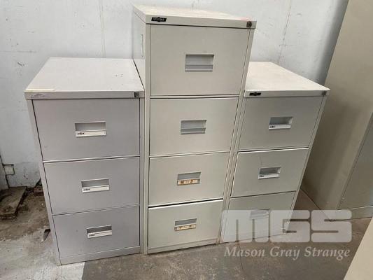 4 DRAWER FILING CABINET & 2 x 3 DRAWER FILING CABINETS, GREY STEEL