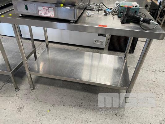 STAINLESS STEEL PREP BENCH, 120 x 70cm, 2 TIER WITH SPLASHBACK