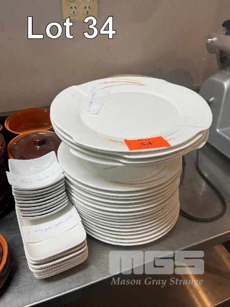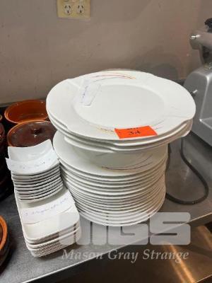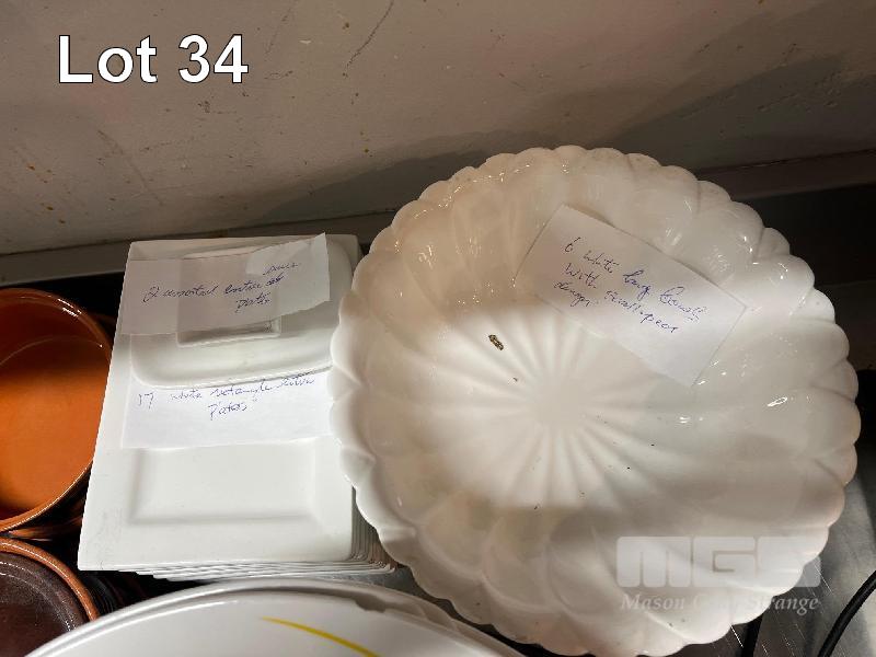 ROUND PLATES, WHITE 4 x 35cm & 16 x 30cm, 10 x SQUARE SAUCE DISHES, 25 x RECTANGULAR ENTREE PLATES, WHITE & 6 x SALAD BOWLS, WHITE, 25cm
