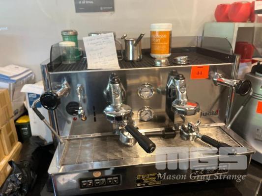 EXPRESSO MACHINE, LUCIA MOD: 2GRDOSATA 2 GROUP & STEAM WANDS, 2 x MILK JUGS, 1 x GREEK COFFEE POT, KNOCK BOX, 240V, 15AMP HARD WIRED