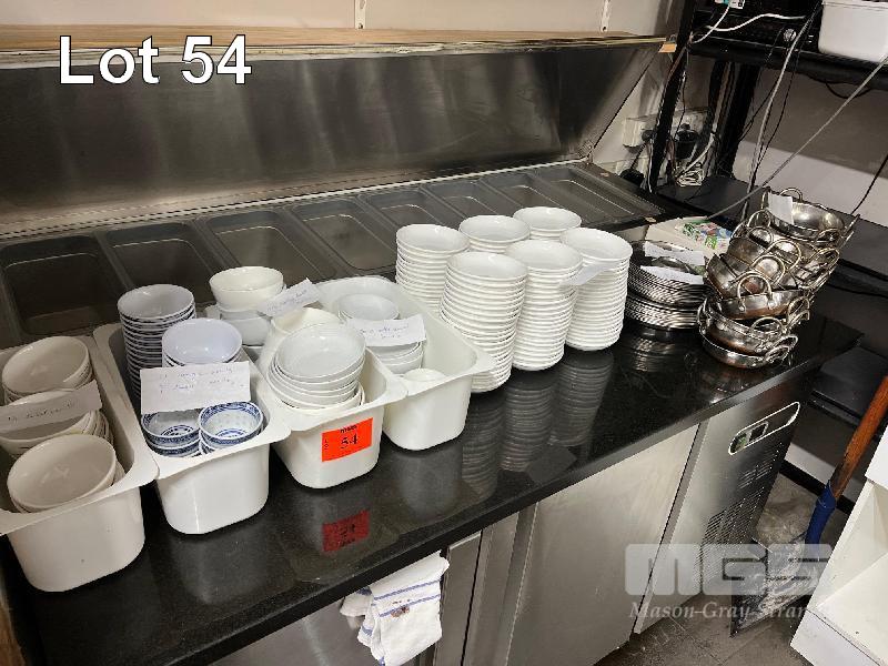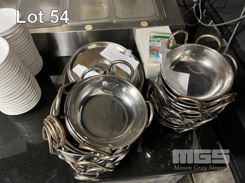 100 x ASSORTED SAUCE/DIP BOWLS, 12 x HORDERVES DISHES, 25 x STAINLESS STEEL OYSTER SERVING DISHES, 25 x STAINLESS STEEL SAGANAKI DISHES