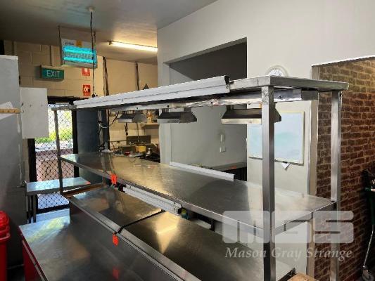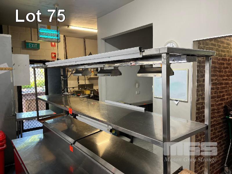 STAINLESS STEEL SHELF, 2 TIER, 2340 x 440mm & 3 x HEAT LAMPS, 240V